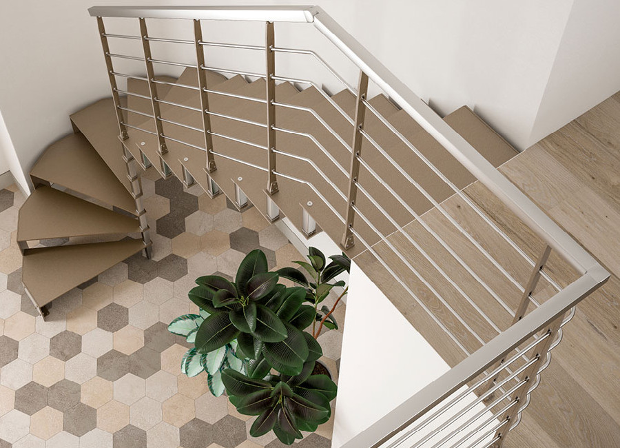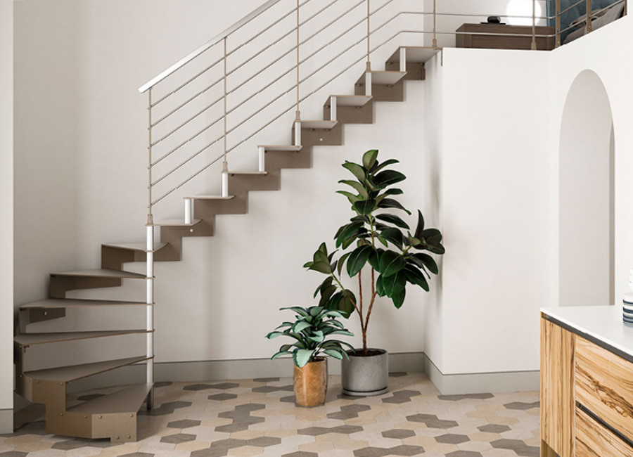 GRADINI FAGGIO SBIANCATO STRUTTURA A FASCIA GRIGIO ALLUMINIO RINGHIERA MOD. 2 |