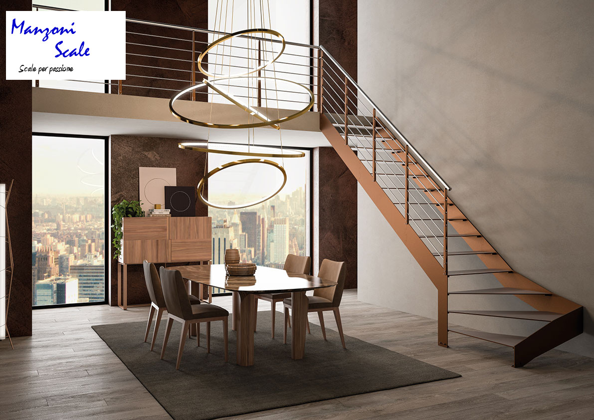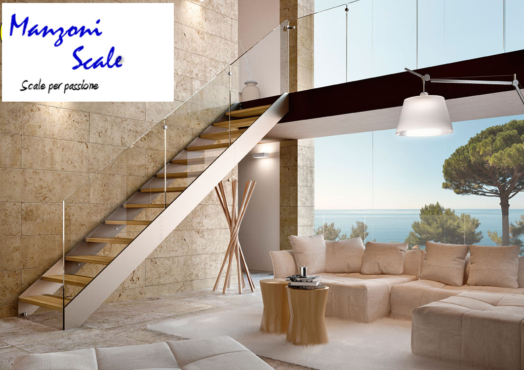 BARCELLONA GRADINI IN ROVERE NATURALE RINGHIERA IN VETRO EXTRACHIARO FASCIONI IN INOX SATINATO |